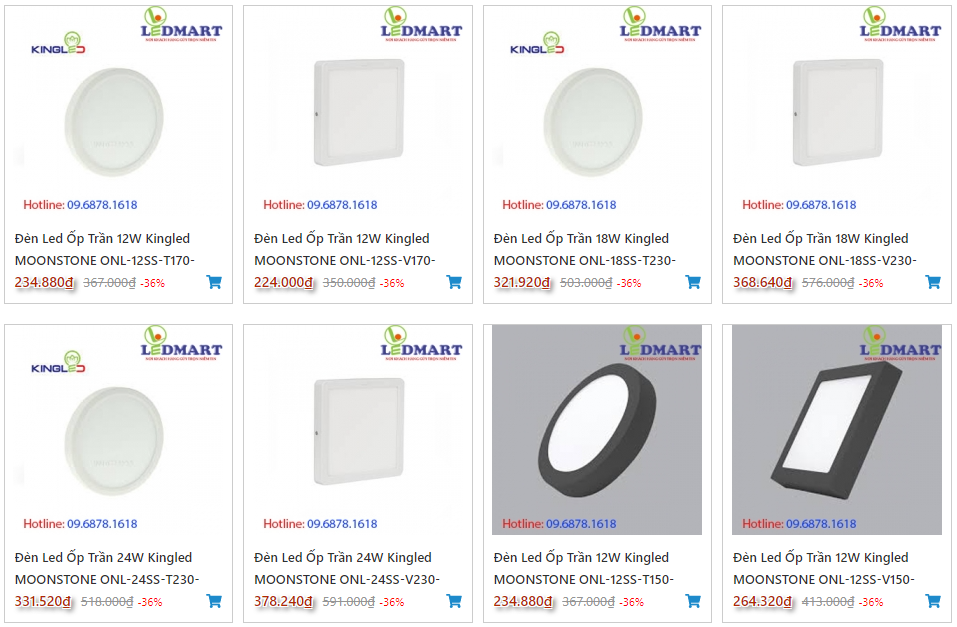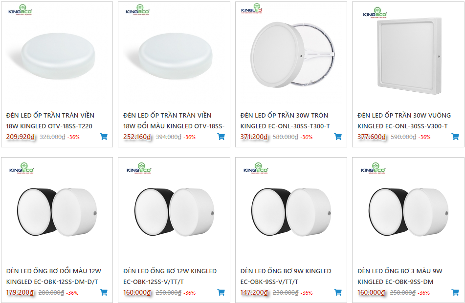 | 9 | Đèn LED Ốp Trần KingLED ONL-18 SERIES | 247.000 VNĐ |