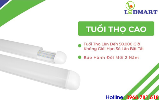 • Tuổi thọ sử dụng lên tới 50.000 giờ, không hạn chế số lần bật/tắt cao gấp 2-3 lần so với đèn thông thường.